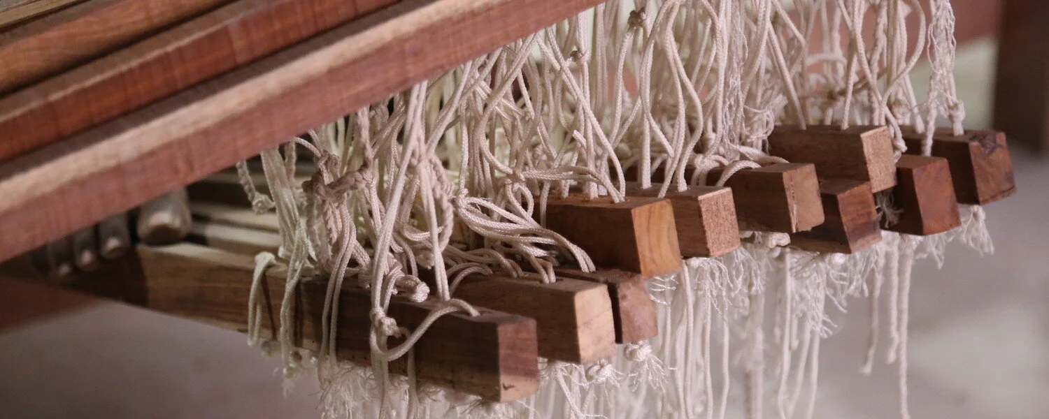 We weave our scarves on a wooden loom, a simple equipment for weaving.